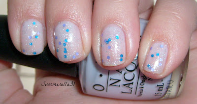 I used 3 coats of OPI Care To Danse?, 1 coat of NYC Starry Silver Glitter, and one more coat of Care To Danse?.